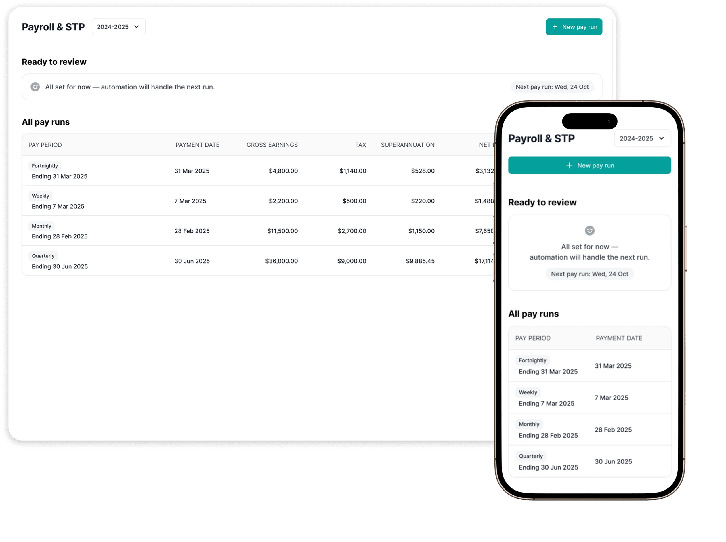 - STP-compliant payroll with direct ATO reporting